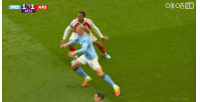第67分钟,加布里埃尔贴身防守哈兰德,将其衣服撕裂: