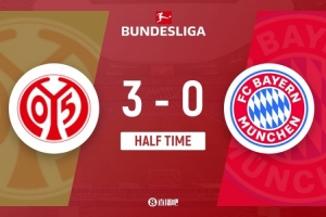半场-拜仁暂0-3美因茨 拜仁2射0正被轰11脚乌尔比希屡神扑
