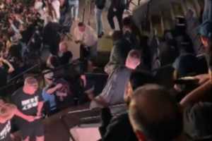 有趣的是,球迷拍到当时不仅是球员起冲突,看台上有球迷也发生了激烈肢体摩擦,场面混乱异常。