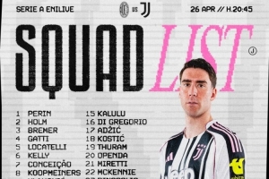 尤文客战米兰名单:伊尔迪兹在列,弗拉霍维奇、佩林、阿季奇回归