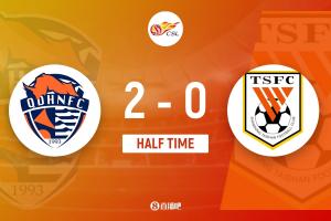 体育资讯4月26日讯 中超第8轮,青岛海牛坐镇主场青岛青春足球场迎战山东泰山。上半场,刘骐玮判断失误送空门,林创益破门+失良机,埃朱马建功,刘洋中框,牟鹏飞门线神扑。半场战罢,青岛海牛2-0山东泰山。