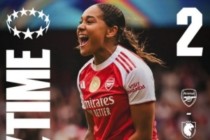 体育资讯4月27日讯 在女足欧冠半决赛首回合,阿森纳女足2-1击败里昂女足。