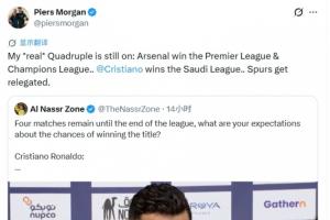 摩根:我真正的四冠王还在继续:阿森纳赢得英超+欧冠,C罗赢得沙特联,热刺降级。